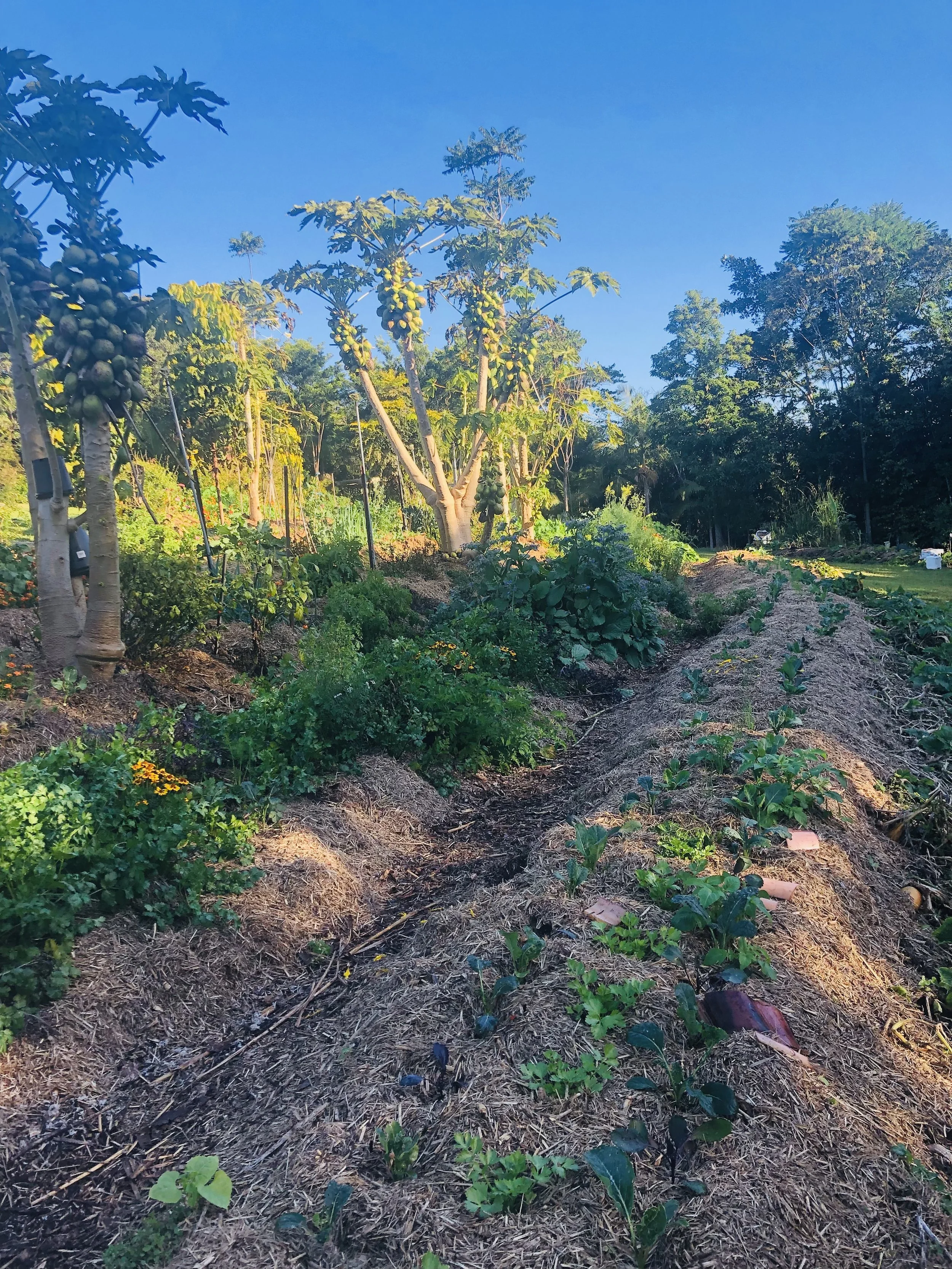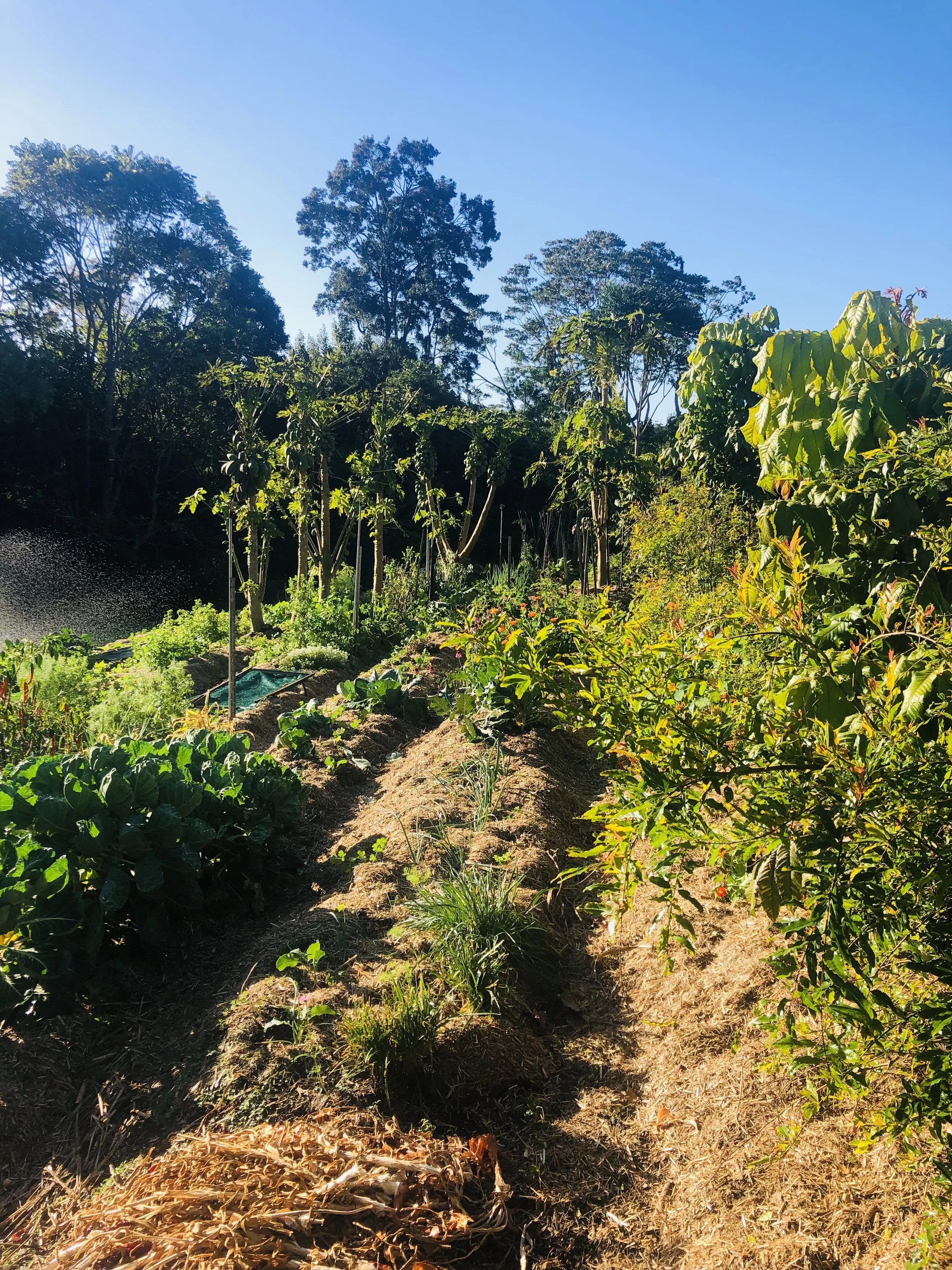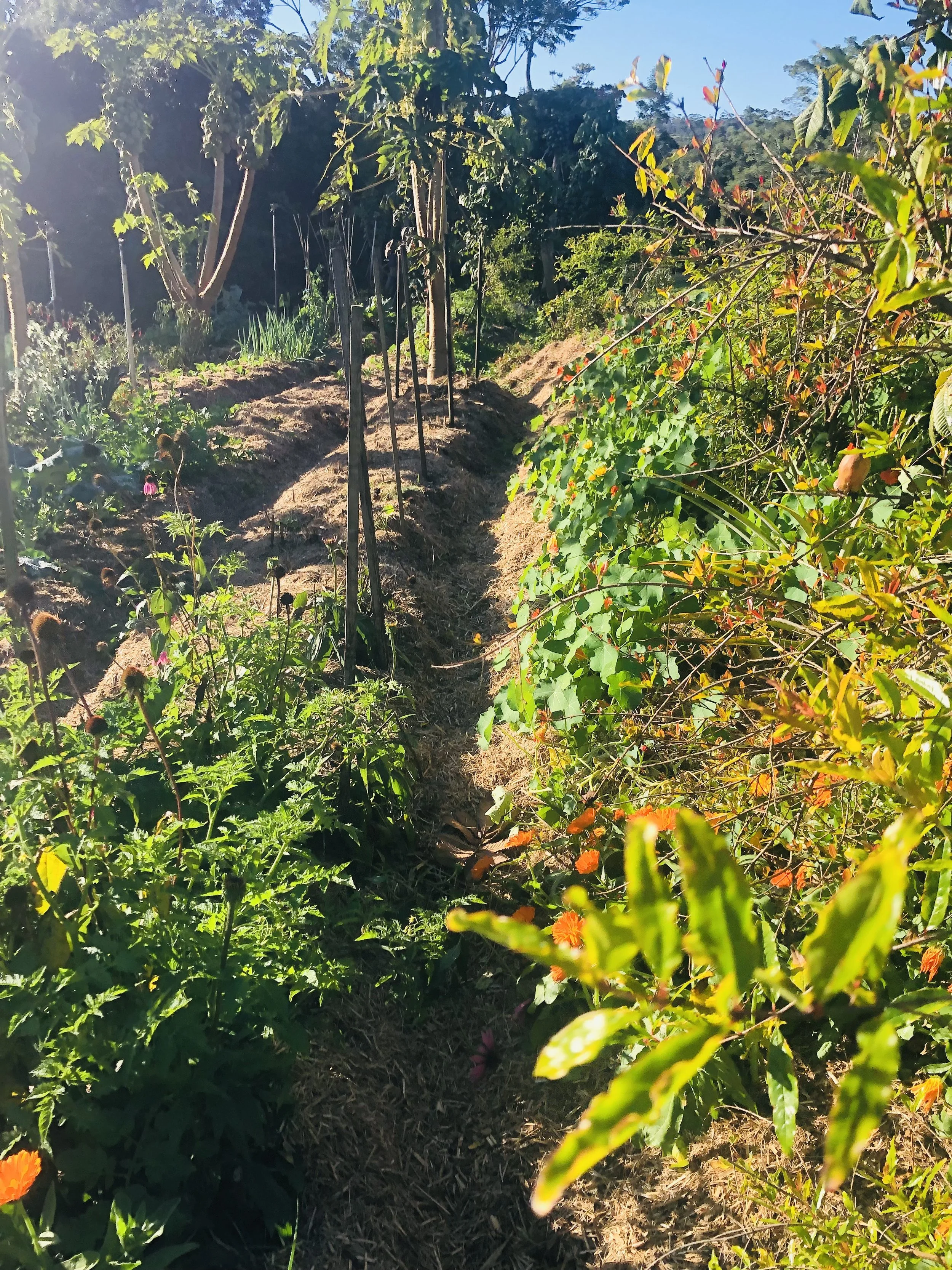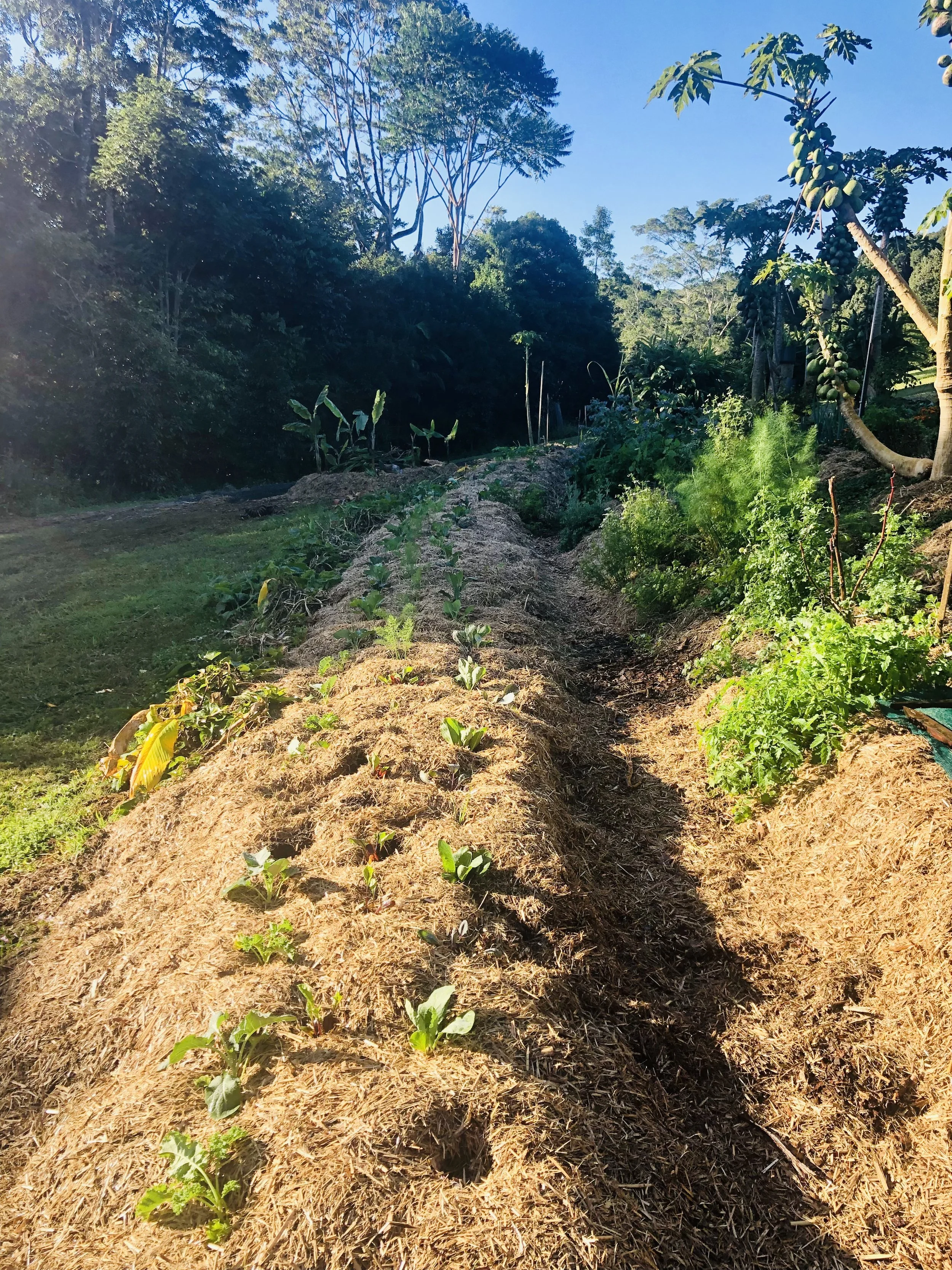 This beautiful market garden and mini food forest was created to make use of a somewhat unusable corner of the property. Utilising run off from an established driveway we were able to pick up the contours shortly after, slowing and sustaining that flow through a citrus and stone-fruit orchard. There is under story planting throughout with a variety of root crops and productive clumping grass species. The nutrient dense run off then slowly feeds the vast and incredibly productive market garden which sits immediately beneath. The variety of productive species and generous yield from this relatively small area is again testament to this design, plus aesthetically it’s now such a beautiful area of the property.
